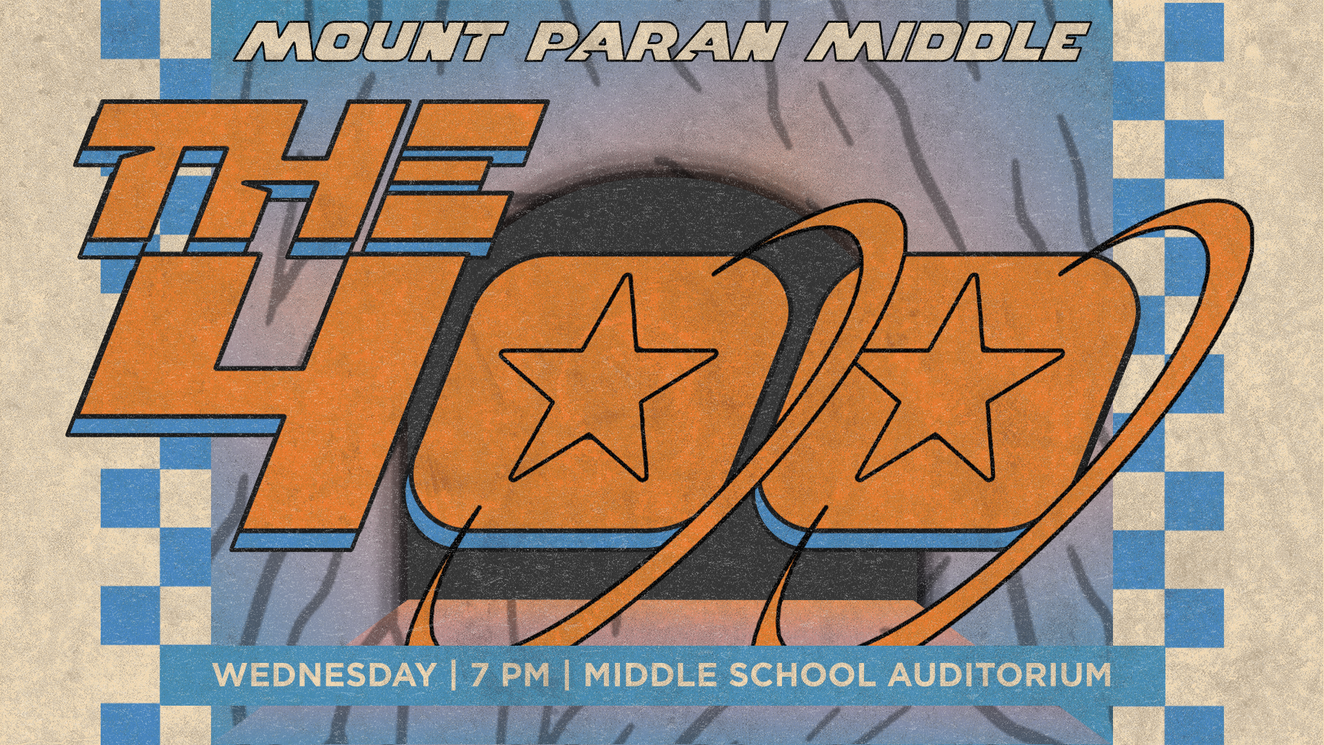 MOUNT PARAN MIDDLE SCHOOL STUDENTS ARE INVITED TO JOIN US FOR THE 400 FROM 7:00–8:00 PM EVERY WEDNESDAY NIGHT. THIS WEEKLY GATHERING IS DESIGNED SPECIFICALLY FOR MIDDLE SCHOOLERS AND IS ALL ABOUT BUILDING COMMUNITY, HAVING FUN, AND GROWING TOGETHER AS PART OF THE FAMILY OF JESUS.