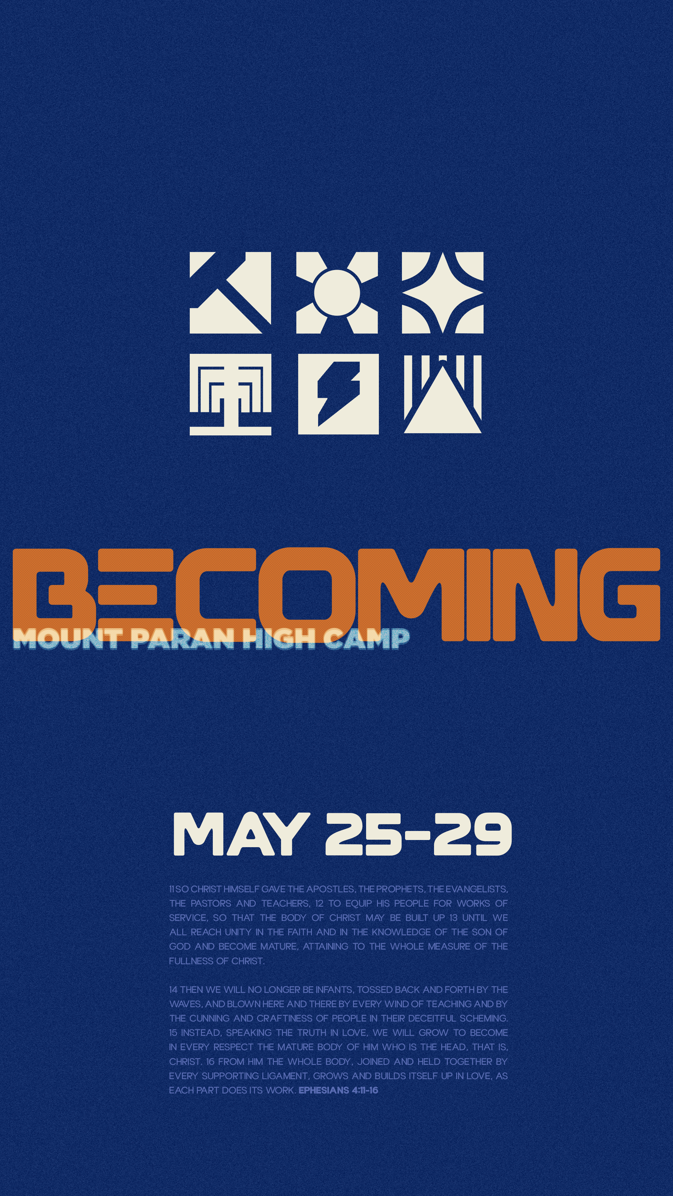 Mount Paran High Camp: BECOMING is centered on helping students understand that faith is not instant — it is formed over time. This week is about growing into who Christ is shaping us to be. In a culture that pressures students to have it all together, BECOMING creates space to slow down, seek God, and embrace the process of transformation. We believe spiritual growth is intentional, relational, and lifelong — and this week is designed to spark that journey in a meaningful way.